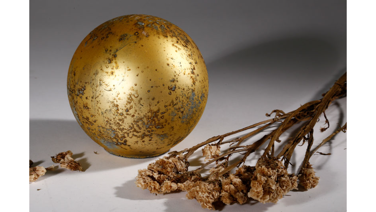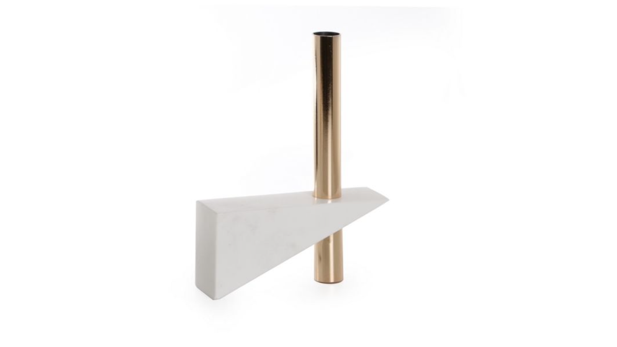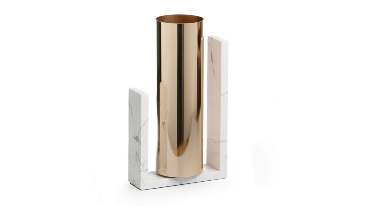 אגרטל מתכת זהב עם בסיס שיש לבן – עיצוב גאומטרי מודרני