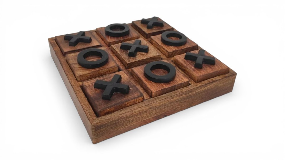 משחק איקס-עיגול דקורטיבי מעץ – טאץ’ של פאן לעיצוב הבית | שחור