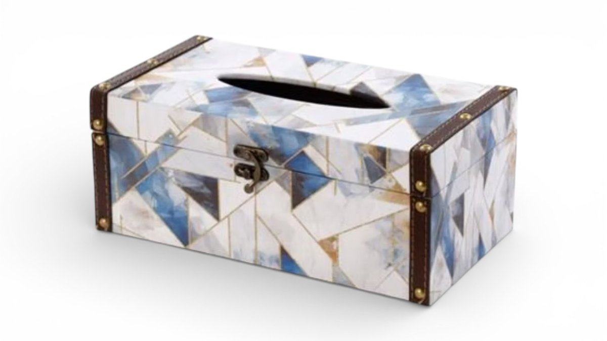 קופסת טישו דקורטיבית Life Style | שיש כחול גיאומטרי