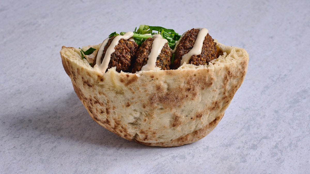 פלאפל במלאווח עם סלטים וממרחים לבחירה