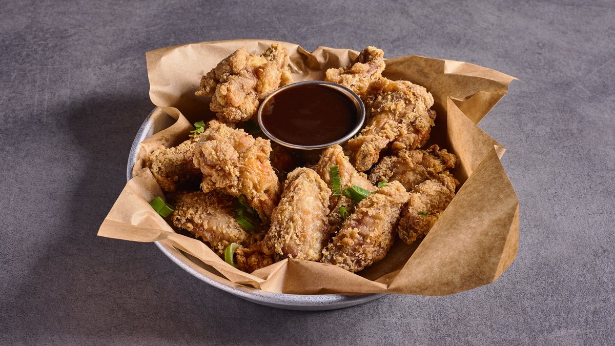 כנפיים מטוגנות בציפוי, בצל ירוק (אם מוסיפים רוטב מייפל סרירצ'ה או באפלו - הרוטב מגיע על הכנפיים, לא בצד)
