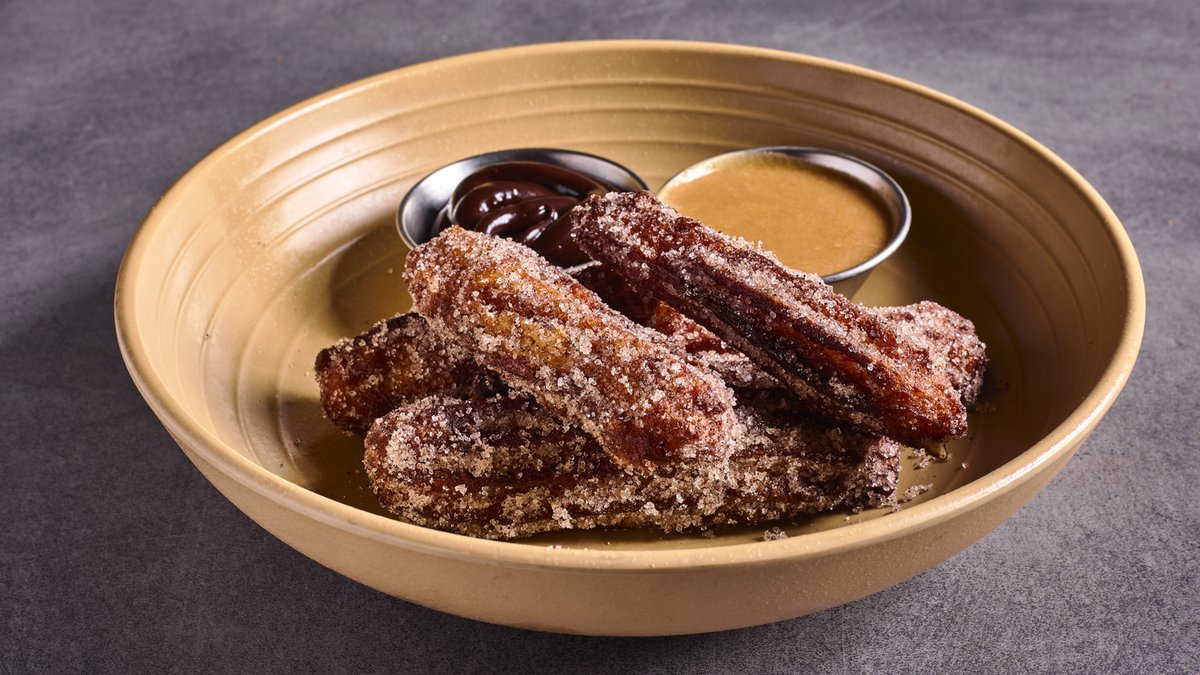 צ'ורוס בסוכר קינמון, רוטב שוקולד-צ'ילי וקרמל לוטוס