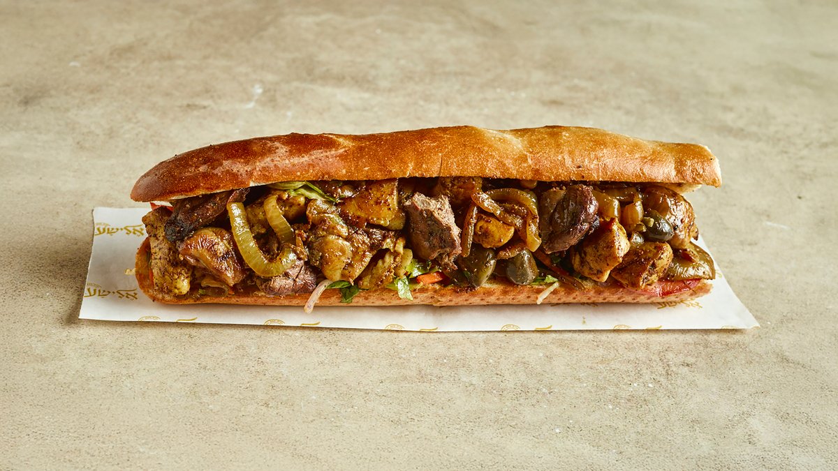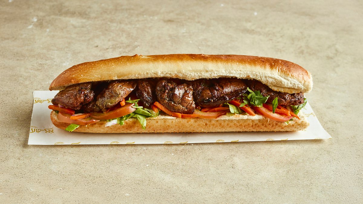 מוגש עם 2 פיתות, חמוצים וסחוג
