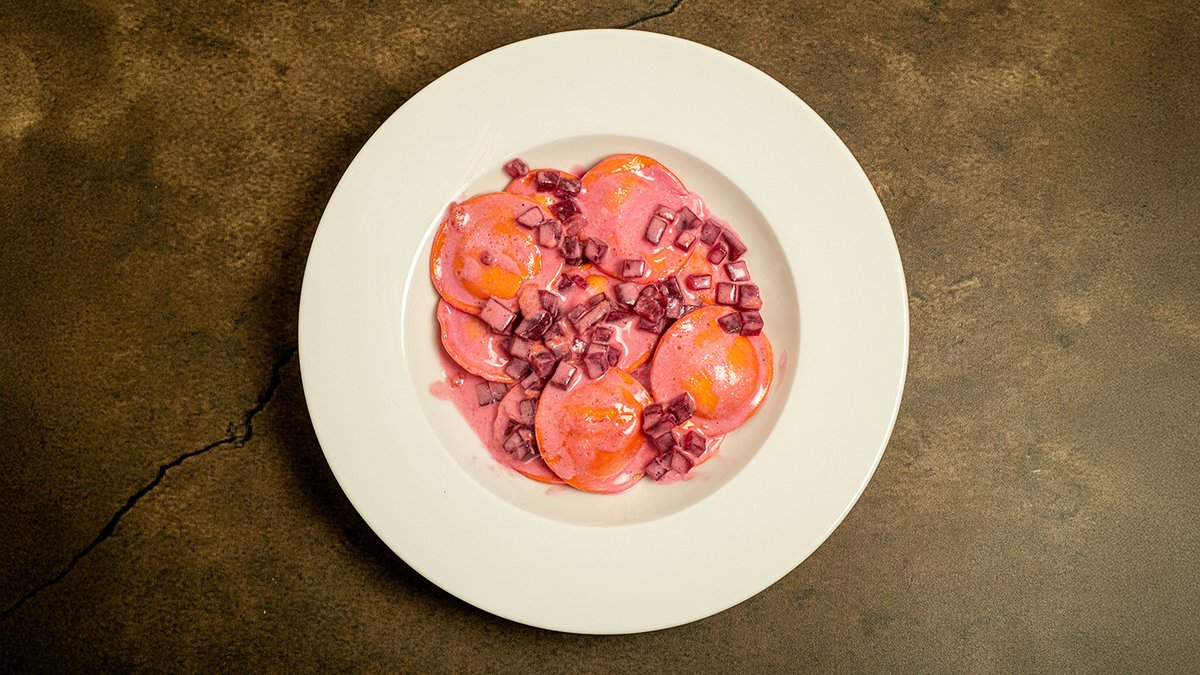 ברוטב שמנת ורוד עם קוביות סלק