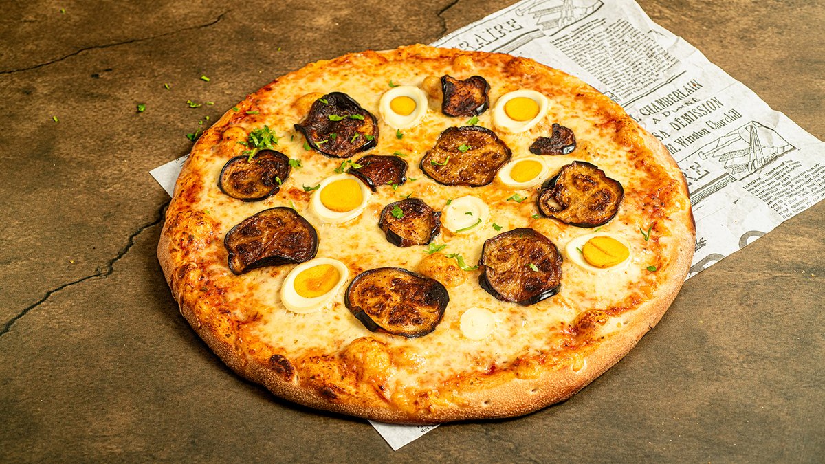 רוטב עגבניות, גבינת עמק, ביצה קשה, חציל, בולגרית ופטרוזיליה
