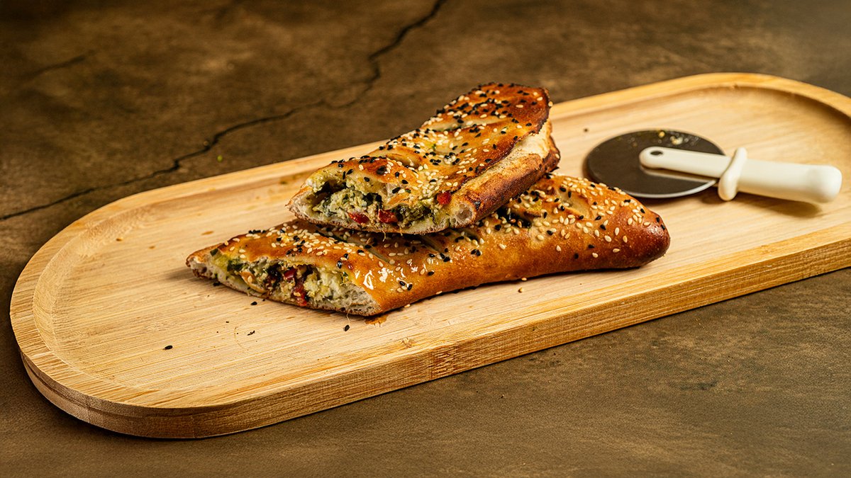 מאפה במילוי גבינה בולגרית, פלפלים קלויים ופסטו