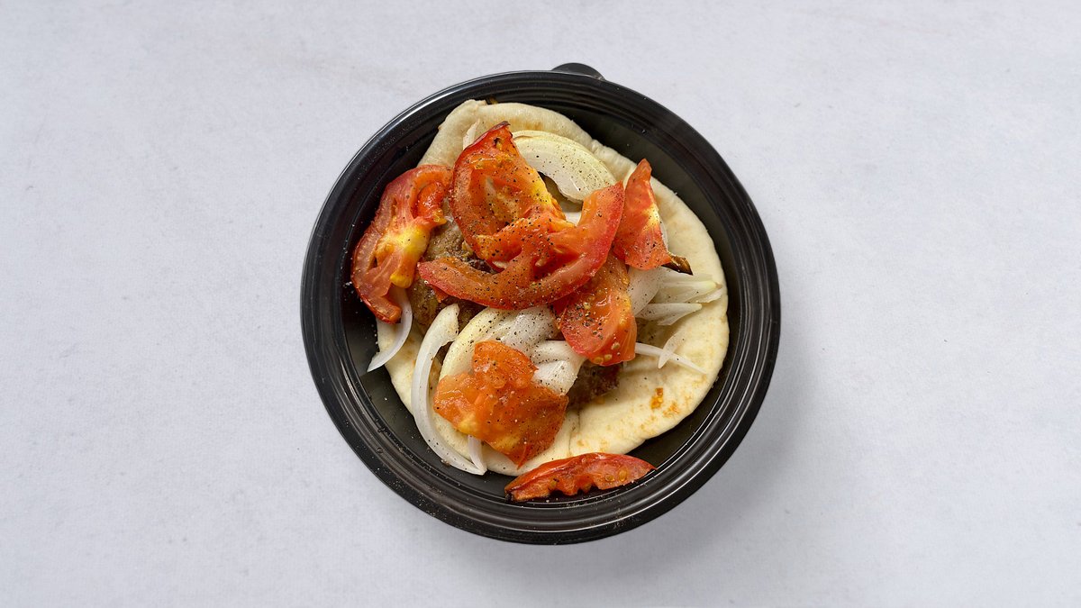 תבשיל קציצות בשר עם ירק, מוגש עם 2 פיתות