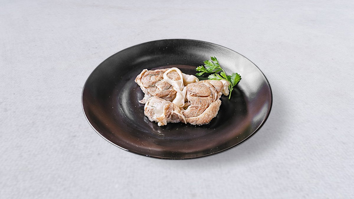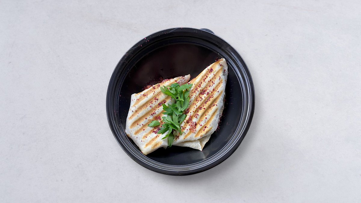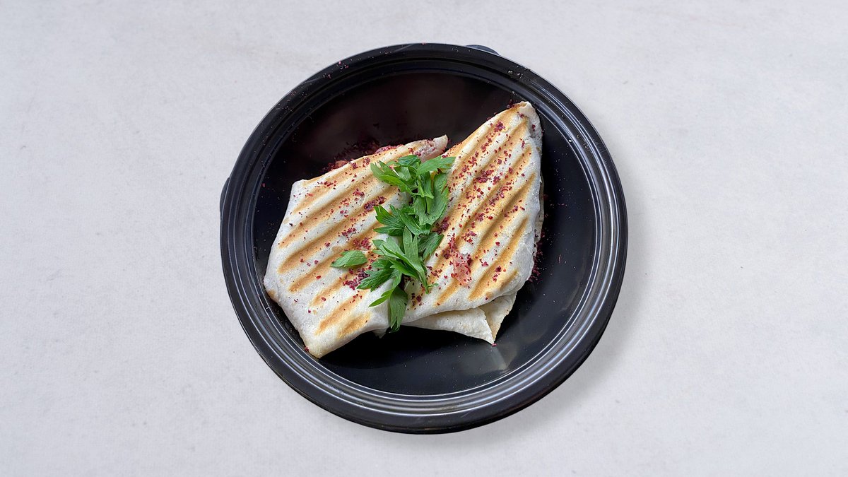 לאפה עם חלקי עוף, בצל מקורמל, סומאק ושקדים