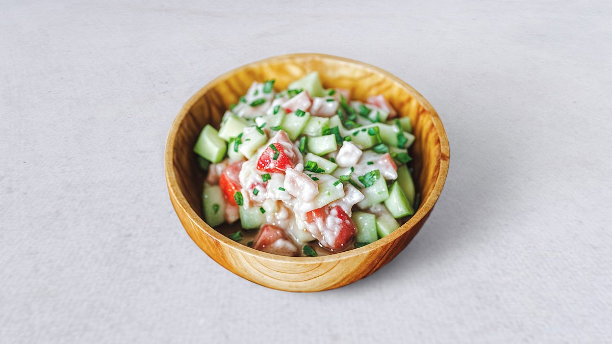 סלט ירקות עם נתחי עוף ברוטב קיסר