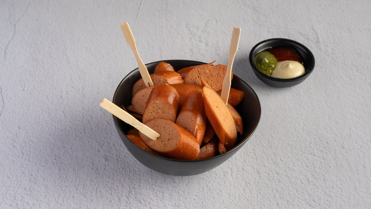 מגש נקניקים קטן (כ150גרם) בליווי טוסטונים, רטבי הבית וחמוצים