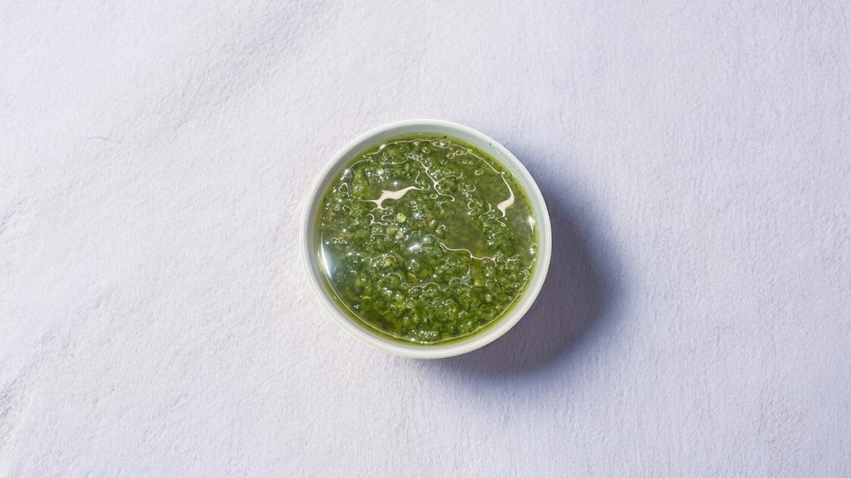לחמניית טוסט עם איולי שום, צי׳ילי מתוק ופסטו. עגבנייה ובצל סגול.