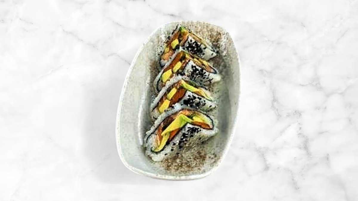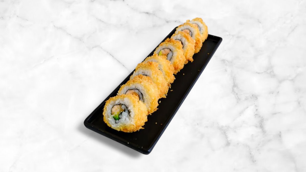 אינסייד אאוט סלמון, פטריות שיטאקי ואבוקדו בציפוי טמפורה ופנקו