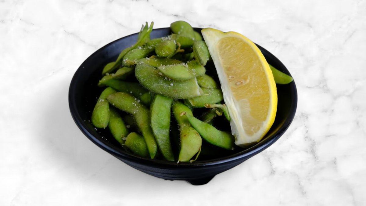 כיסונים במילוי פטריות שיטאקי, כרוב, בצל סגול ונבטים מוגש עם רוטב סויה מתובלת
