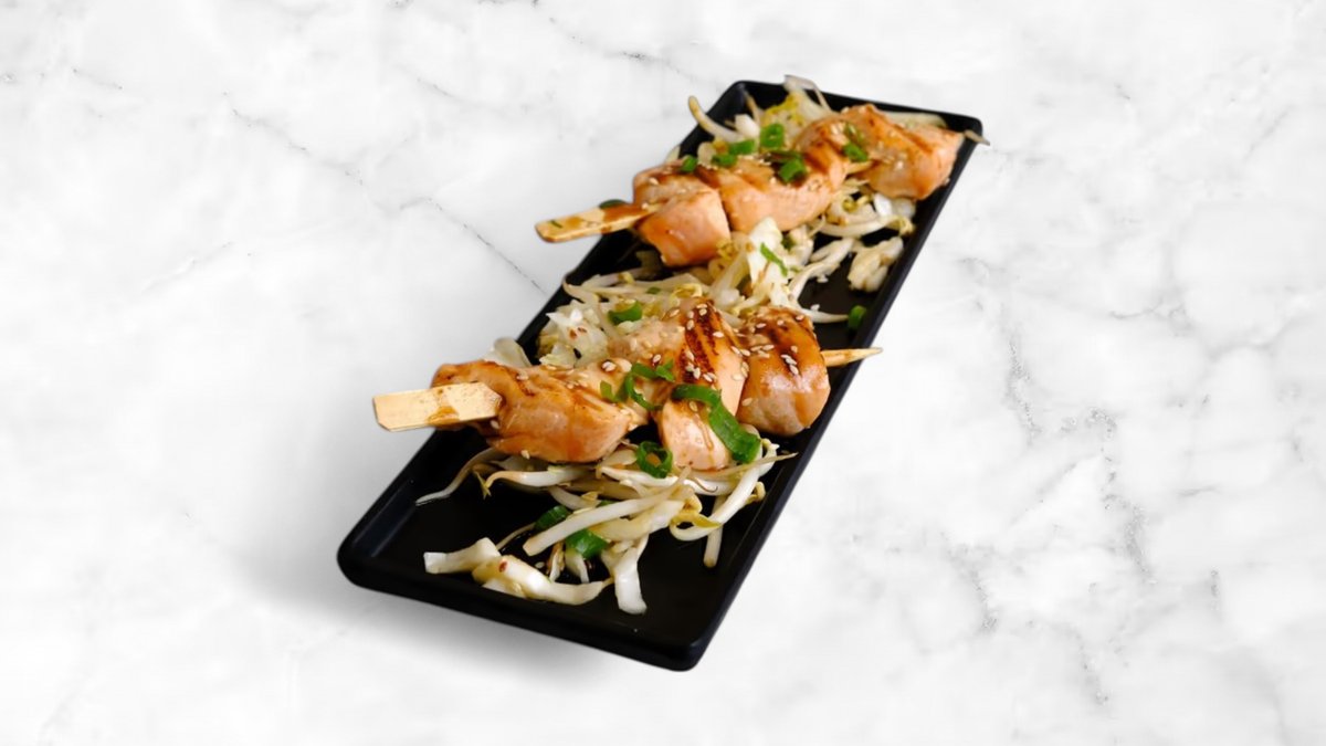 שיפודי קוביות סלמון צרוב עם טריאקי בציפוי שומשום