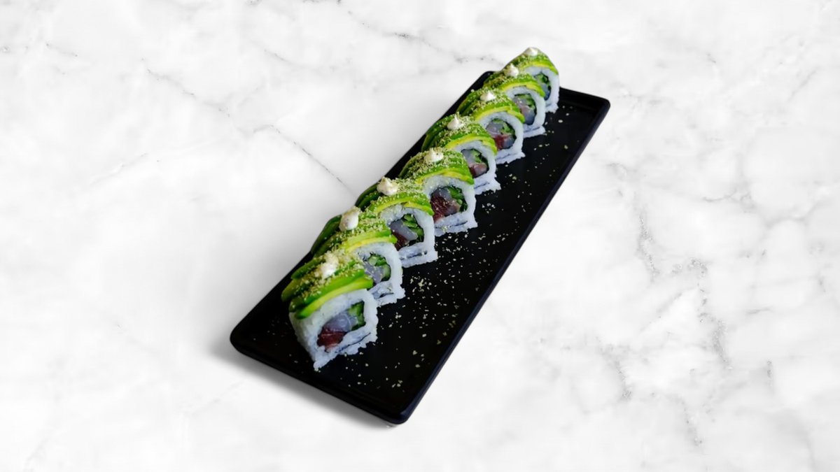 אבוקדו, אספרגוס ועירית במעטפת אבוקדו, סריראצ'ה, פנקו וואסבי, שומשום וקריספי שאלוט