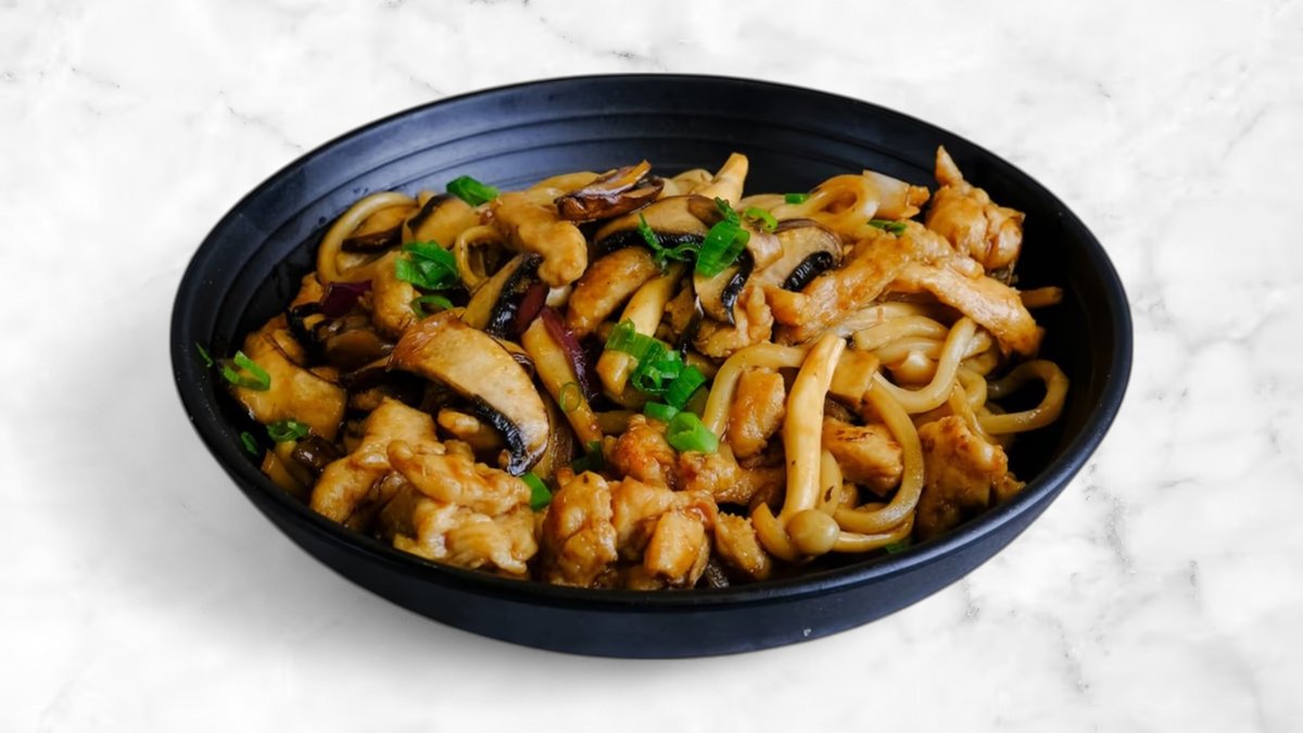 אטריות, פטריות פורטבלו, פיטריות שימאג'י, בצל סגול, מחית כמהין, סויה וטריאקי