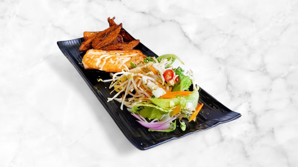 נתח פילה סלמון צרוב בטריאקי ושום || בליווי תפו״א טוגראשי / אורז מאודה לבחירה וסלט עלים אישי