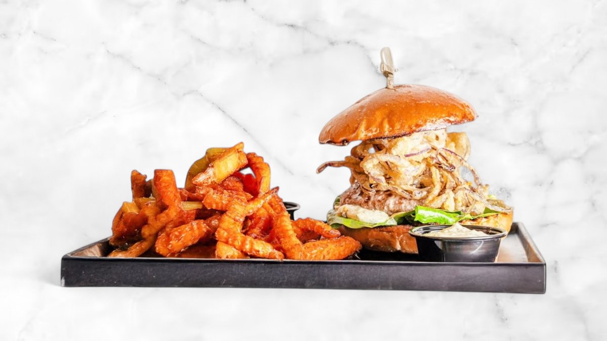 קציצת בורגר עסיסית בלחמניה רכה, בצל קריספי ופטריות פורטבלו צלויות על מצע חסה לאליק ואיולי בזיליקום || מוגש בליווי תוספת חמה לבחירה