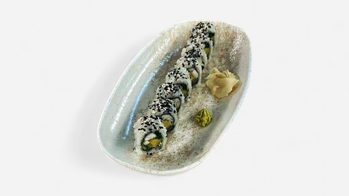 לברק בטמפורה, אבוקדו, מלפפון ועירית בציפוי שומשום