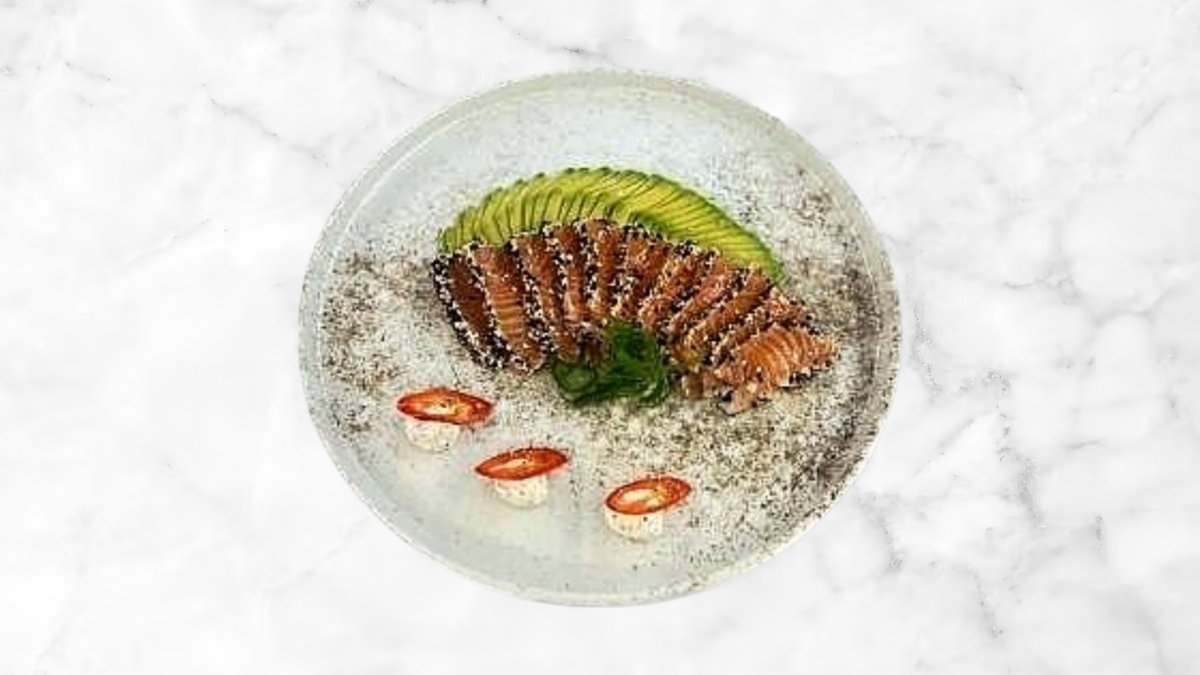 טרטר סלמון, אבוקדו, עירית, אספרגוס, שומשום וקריספי קשיו