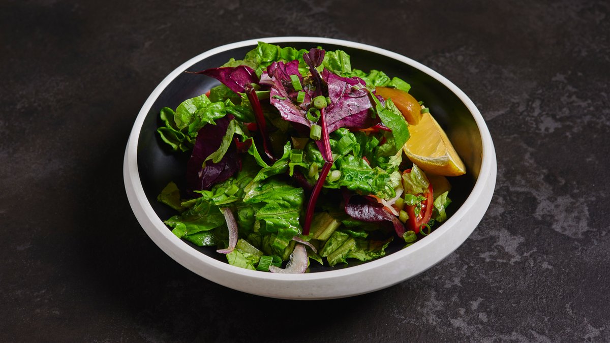 בצל ירוק תערובות עלים ירוקים – מיקס חסות, עלי בייבי, עגבניות שרי צבעוניות, בצל סגול וסלרי
