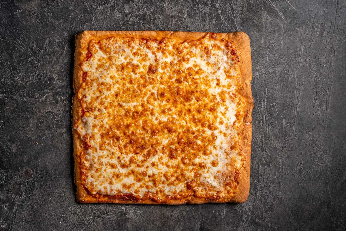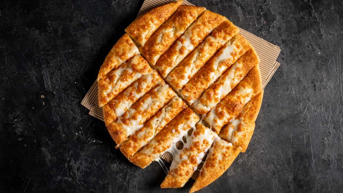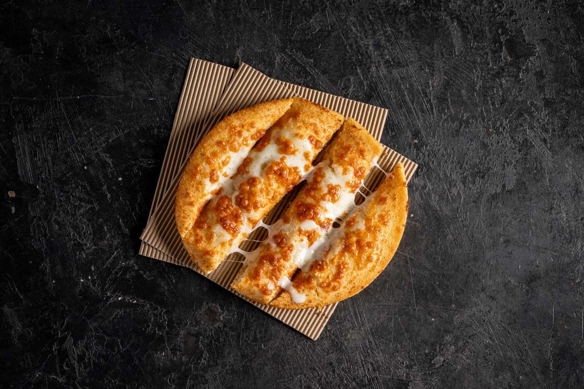 פיצה מבצק דק עם 28 נגיסי גבינת מוצרלה בשוליים, שומשום, קצח ושום. ניתן להוסיף תוספות בתשלום