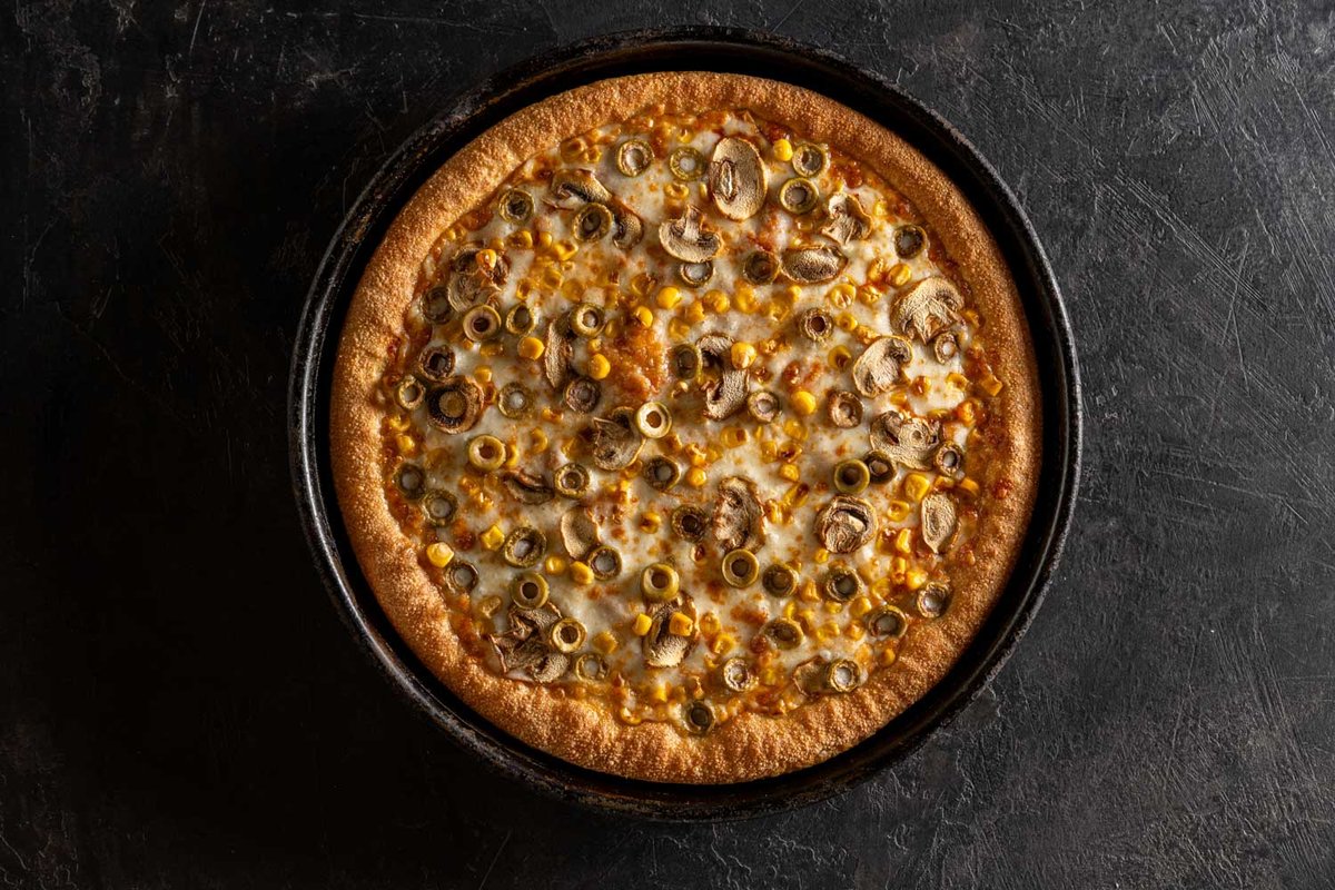 פיצת הדגל של פיצה האט מבצק עבה. ניתן להוסיף תוספות בתשלום.