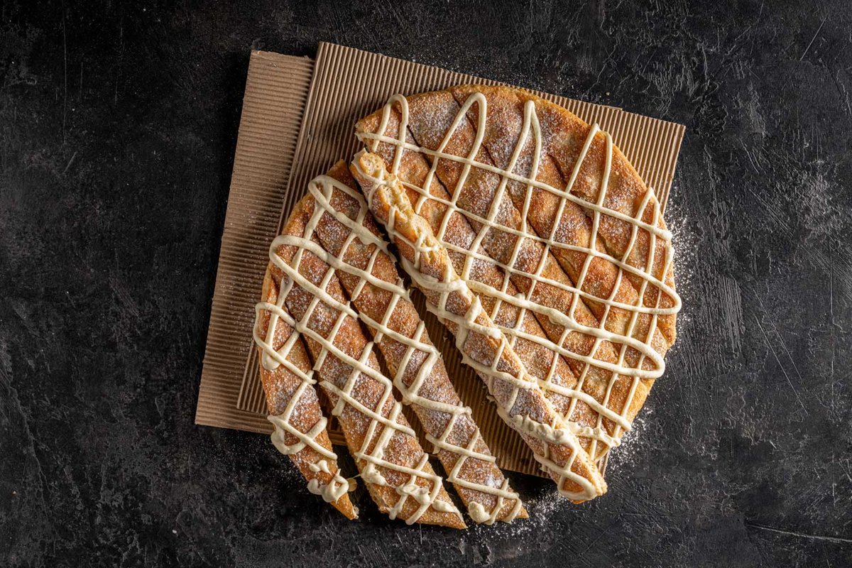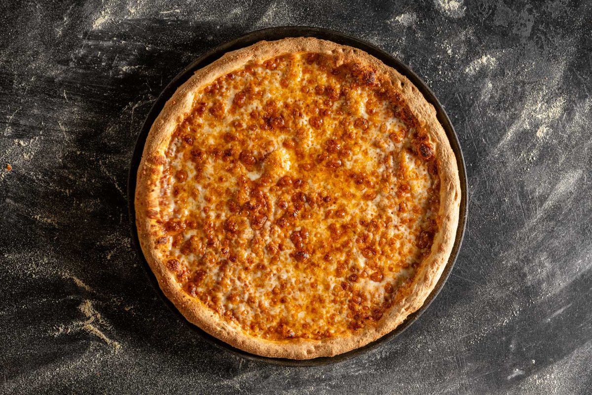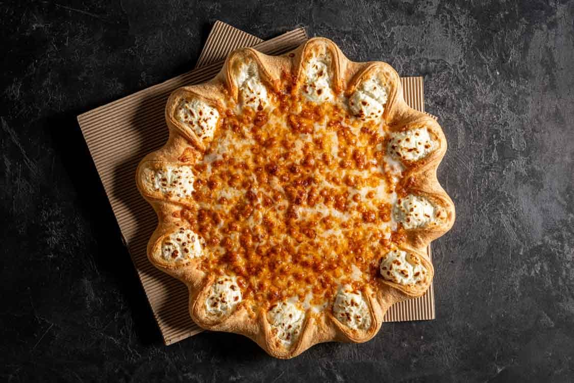 פיצה מבצק דק עם מילוי גבינה בשוליים. ניתן להוסיף תוספות בתשלום