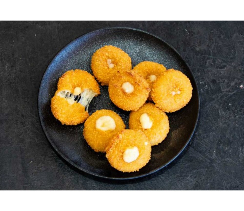 8 טבעות של גבינת גאודה נמתחת מצופה בפירורי לחם פריכים
