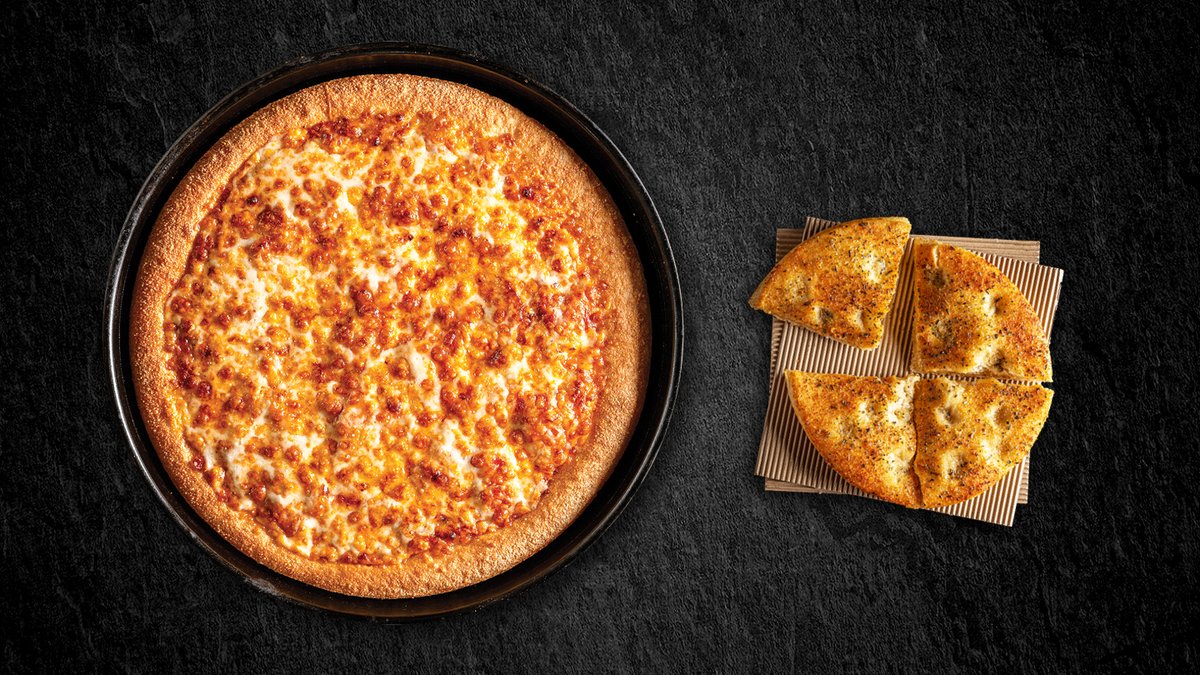 פיצה משפחתית + לחם שום + מקלות שוקולד