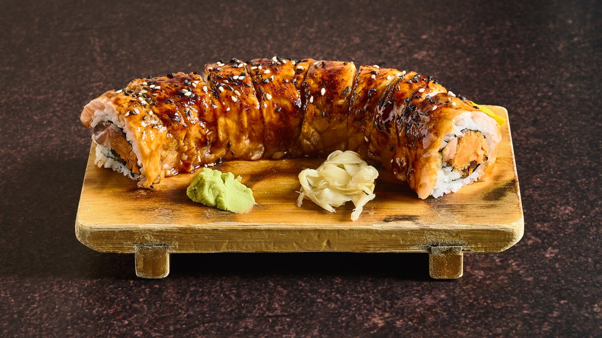 רול סלמון וירקות, במעטפת סלמון צרוב, חצי אצה