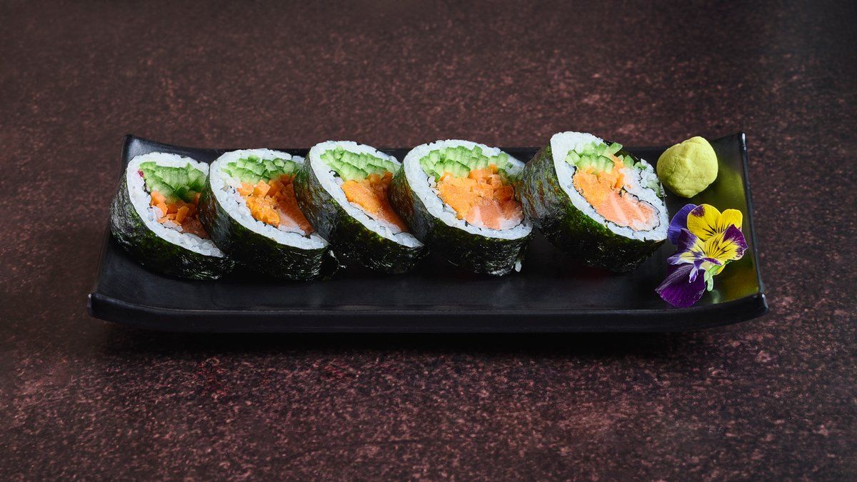 רול סלמון וירקות, במעטפת סלמון צרוב, אצה שלמה