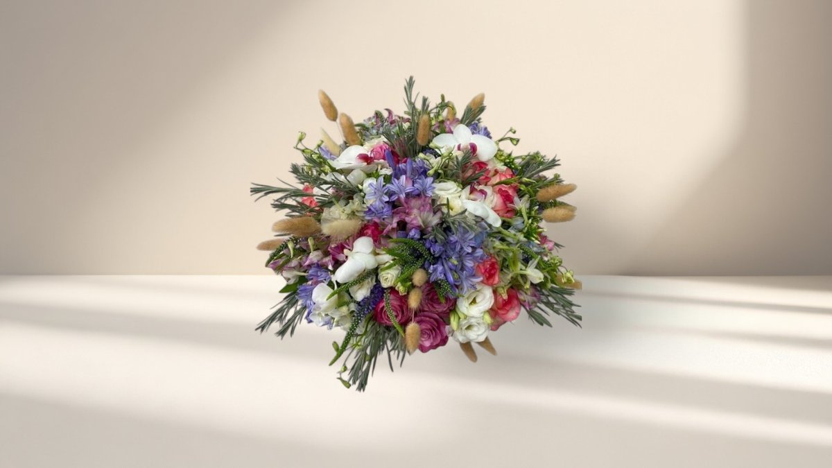 התמונה להמחשה בלבד | חלק מהפרחים עשויים להגיע סגורים מפאת טריותם | ייתכנו שינויים בסוגי הפרחים בהתאם למלאי הקיים ועונות השנה | כל הזרים מגיעים בגובה של עד 38 ס"מ | הזר מגיע ללא אגרטל אלא אם צויין אחרת