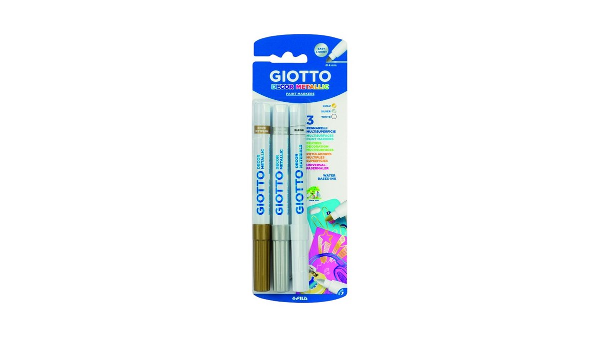 GIOTTO טוש דקור מטאלי זהב-כסף-לבן