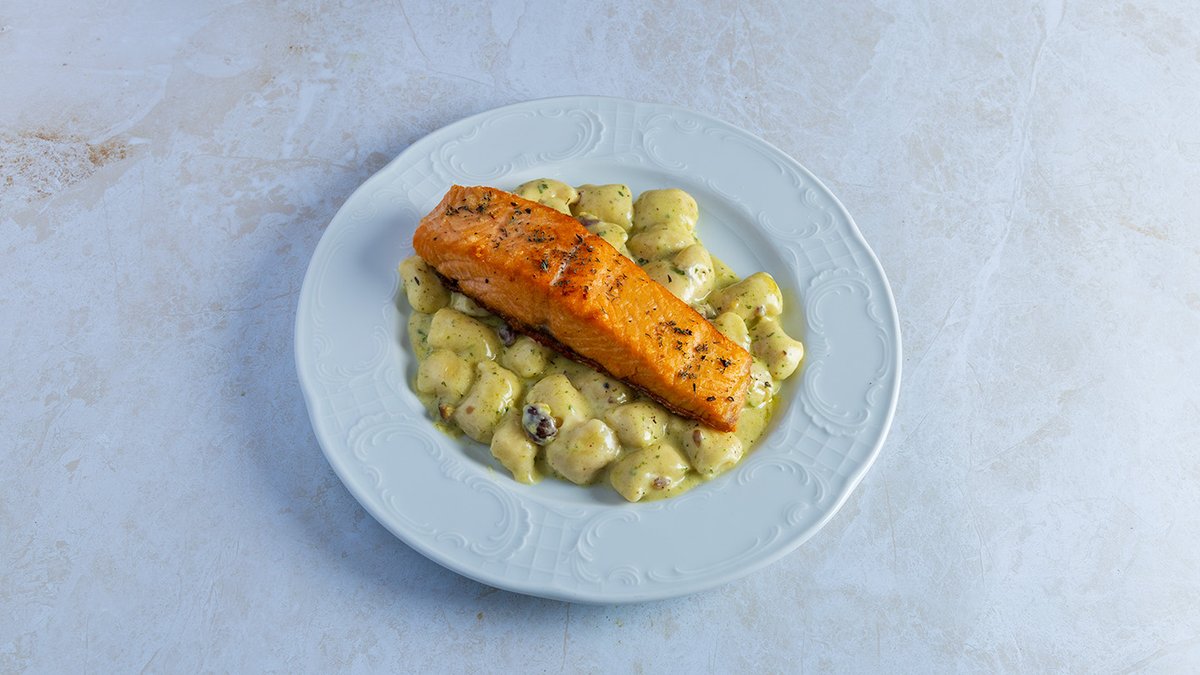 פילה סלמון מוגש על ניוקי בחמאת עשבי תיבול