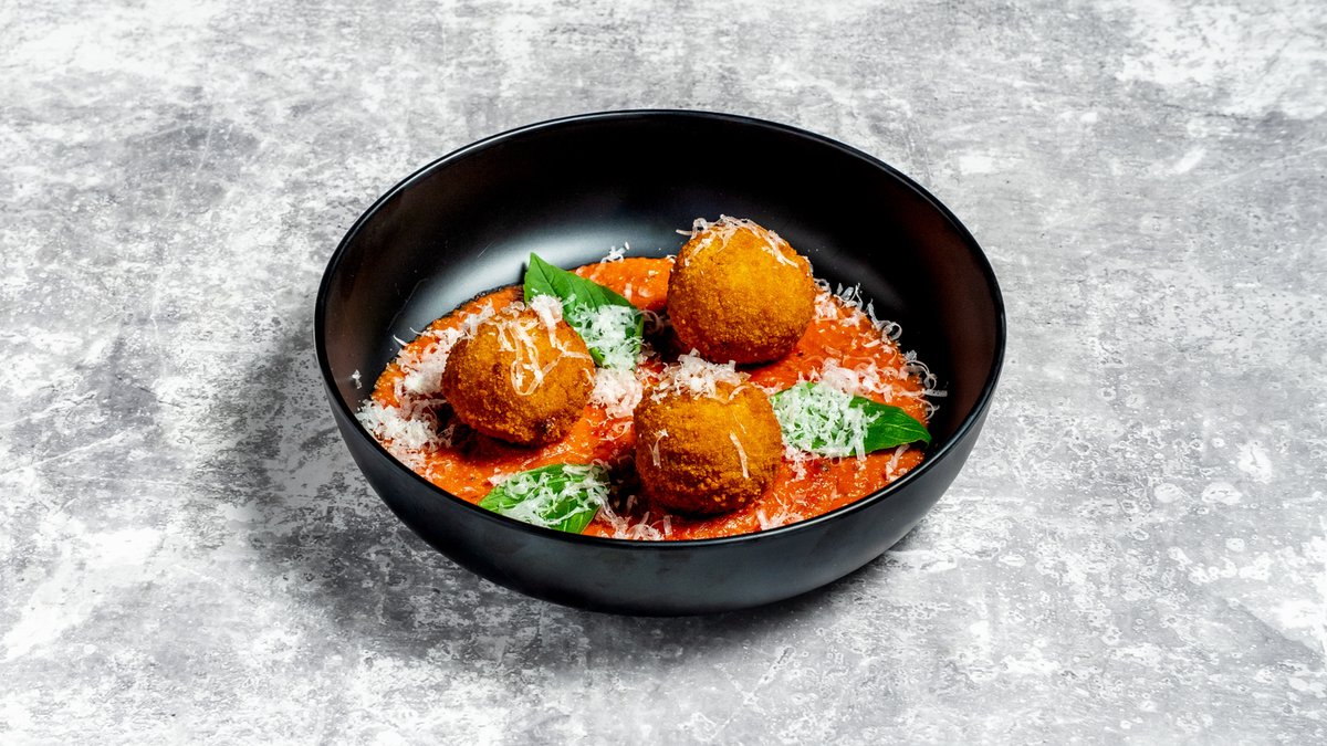 כדורי ריזוטו, מטוגנים על חמאת עגבניות שרי.