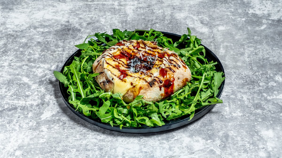 קממבר אפוי בבצק נאפוליטני, רוקט, ריבת שרי, פרמז'ן ובלסמי מצומצם