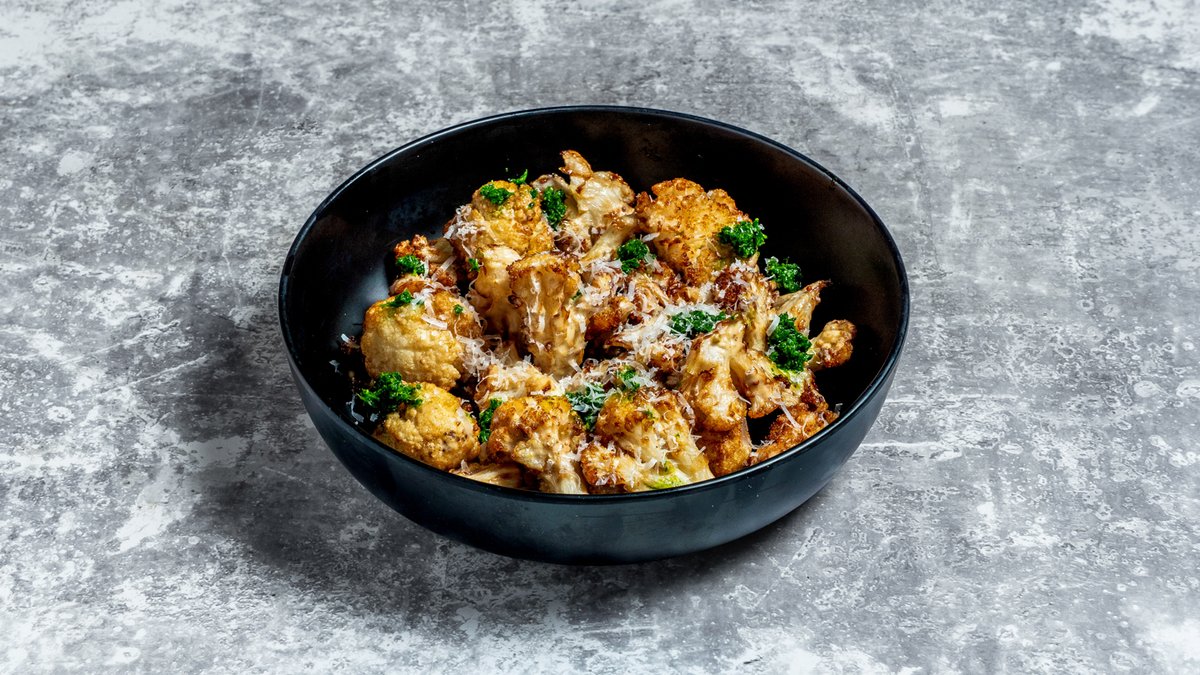 פרח כרובית מפורק ברוטב קיסר על בסיס גרמולטה