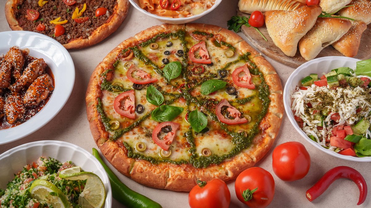 Mediterranean pastries | Pizza | Salad