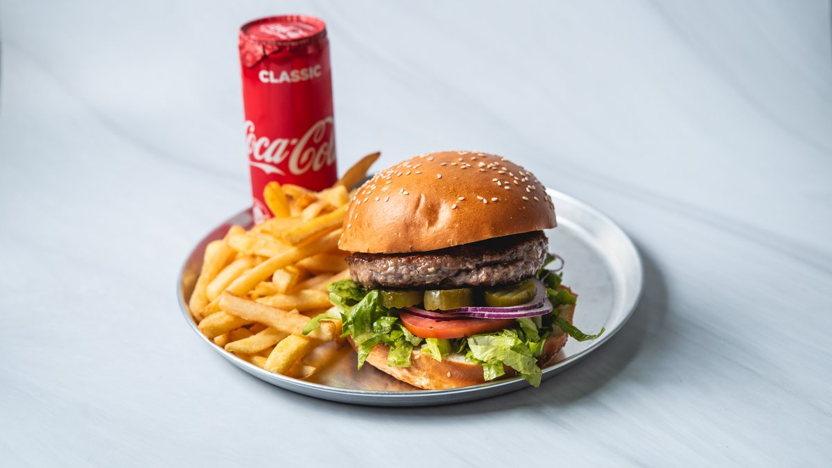 מוגש במידת עשייה MW, ללא רטבים עם צ׳יפס ושתייה לבחירה