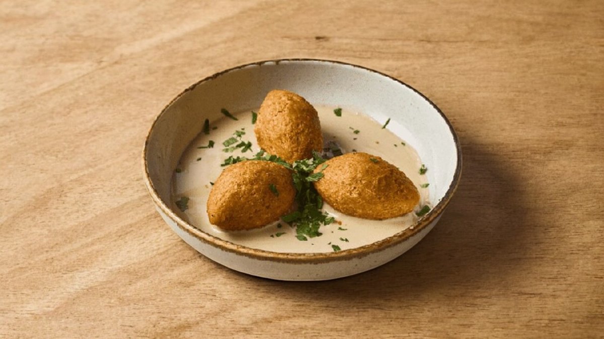 3 יח׳ קובה בורגול מטוגנות ופריכות במילוי בשר וצנוברים מוגש עם טחינה ועמבה