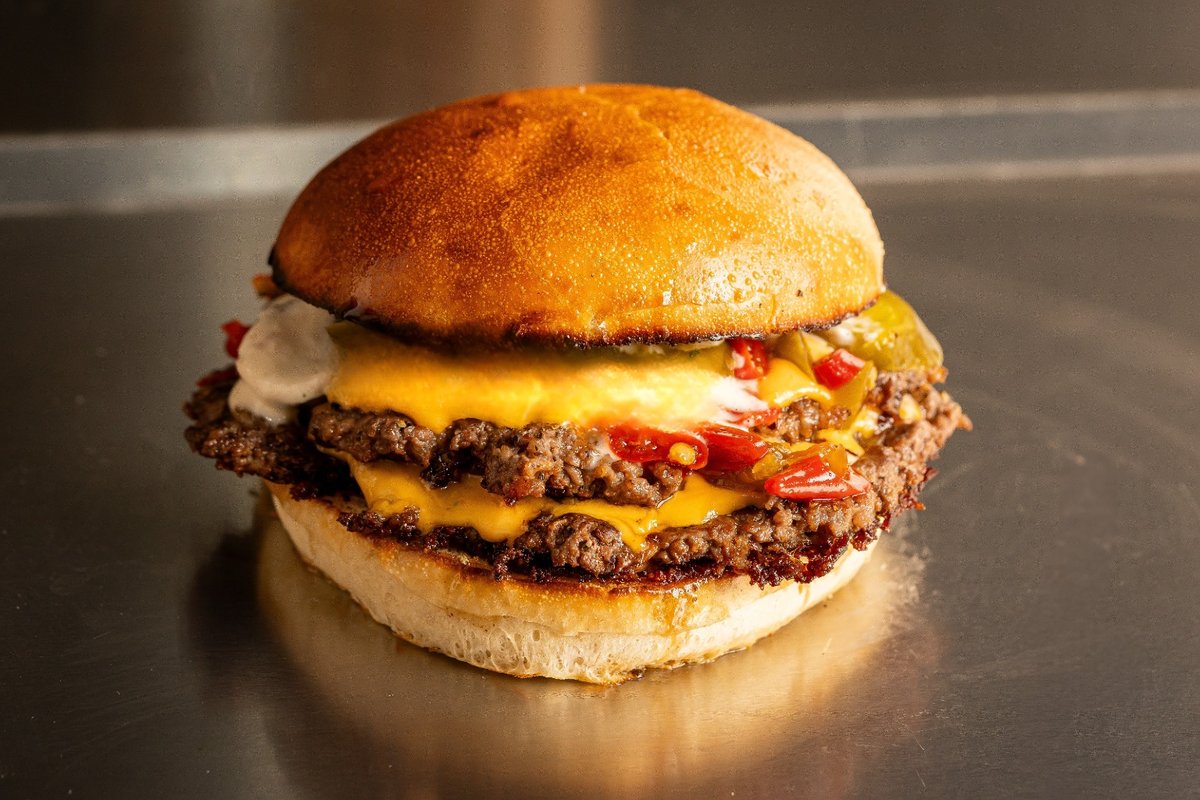 2 קציצות סמאש צרובות בלחמנייה רכה, ריבת צ'ילי, בצל חרוך, צ'דר כפול ואיולי שום פרמזן (110 גרם ליח׳ קציצה) * לא ניתן לבצע שינויים ברמת החריפות