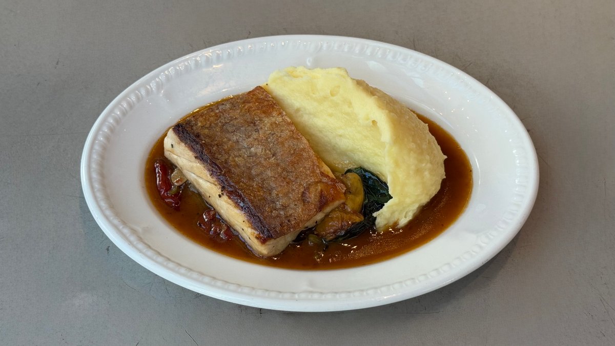 בתבשיל חצילים ועגבניות לחות, בתוספת פירה חמאתי