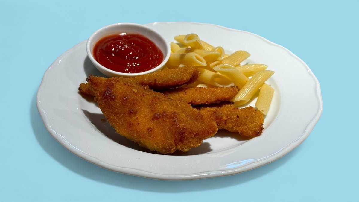 שניצל עוף אפוי מוגש עם פתיתים של בית / פסטה