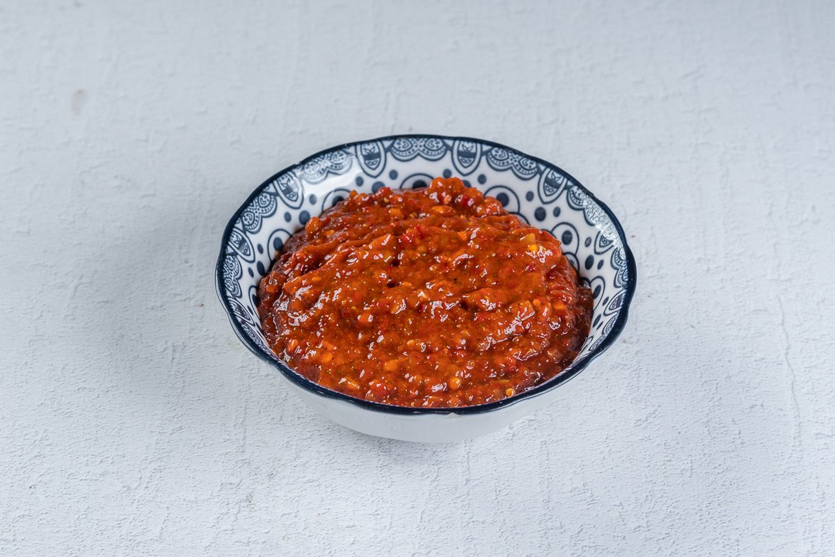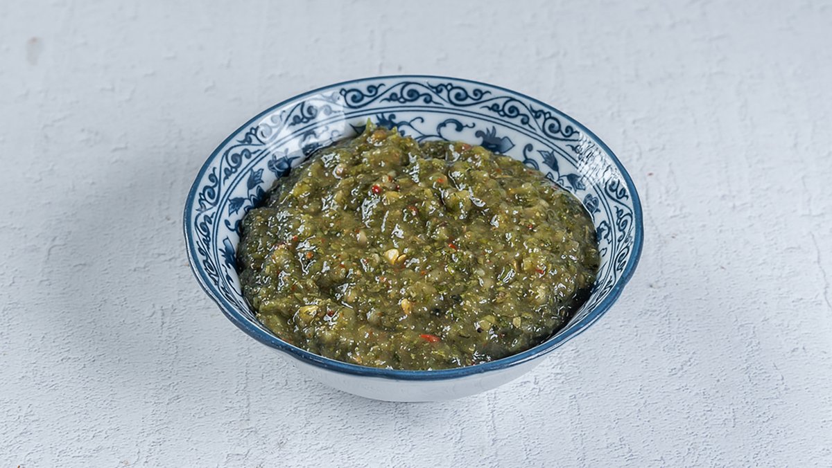 עם פלפל חריף, כוסברה טרייה ושום