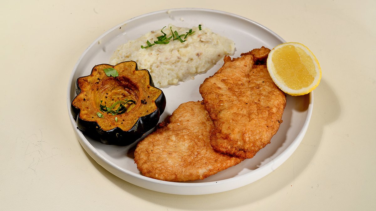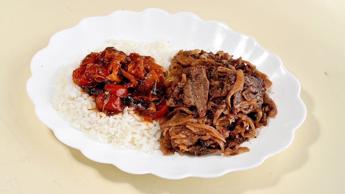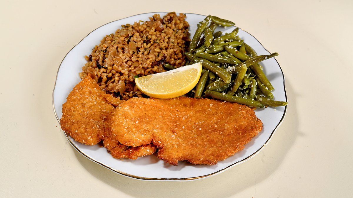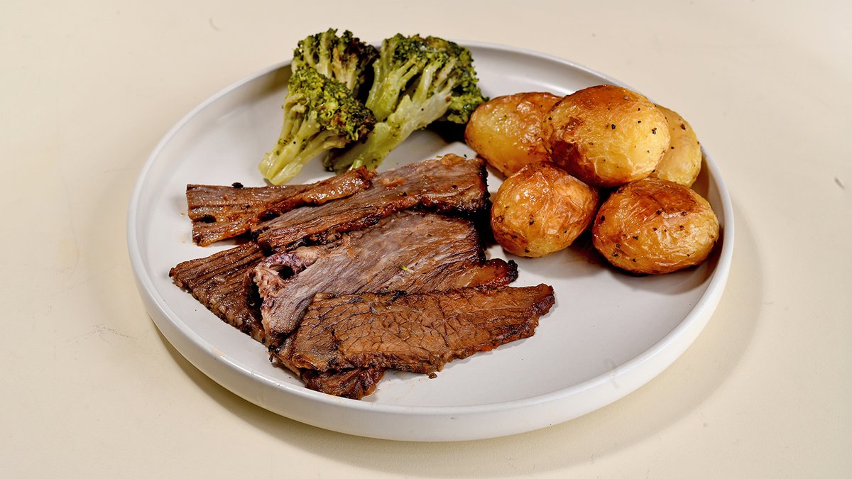 נתח בריסקט פרוס מוגש עם 2 תוספות לבחירה