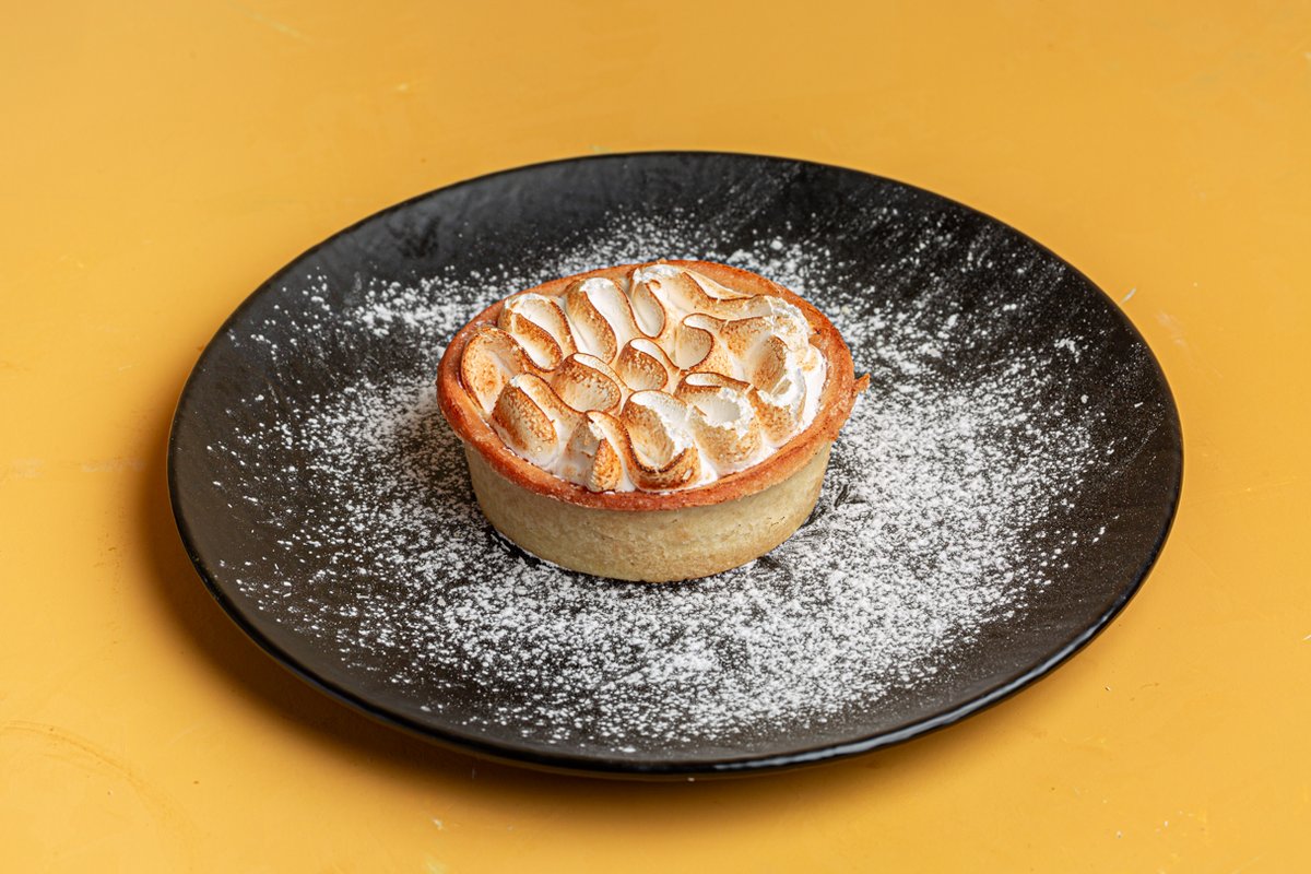 פאי של בצק פריך במילוי קרם לימון אפוי עם ציפוי מרנג צרפתי