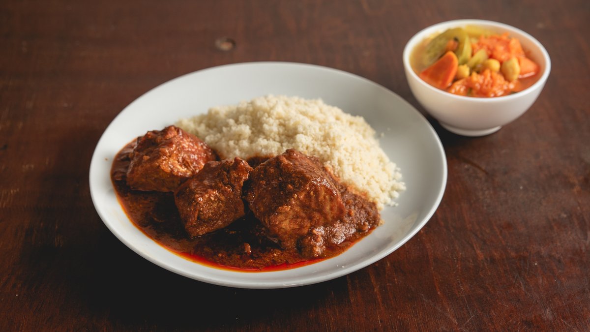 מבושלות ברוטב עגבניות וכרפס, מוגשות על מצע של אורז או קוסקוס