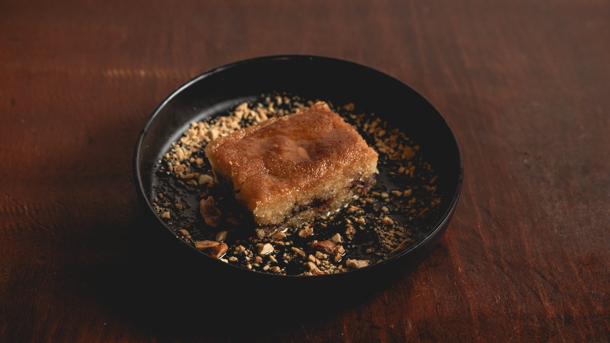 עוגת סולת עם תמרים כבושים דבש ומי שושנים