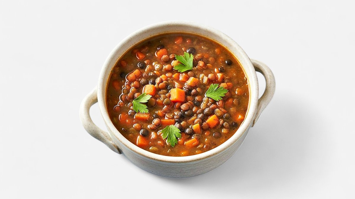 מרק עדשים עשיר, משביע ומזין. עדשים שחורות וכתומות, בצל, שום. סלרי, גזר הרבה עשבי תיבול